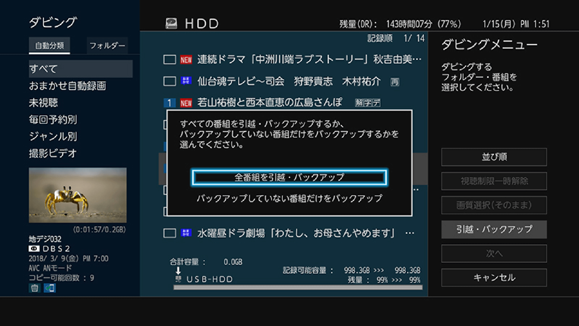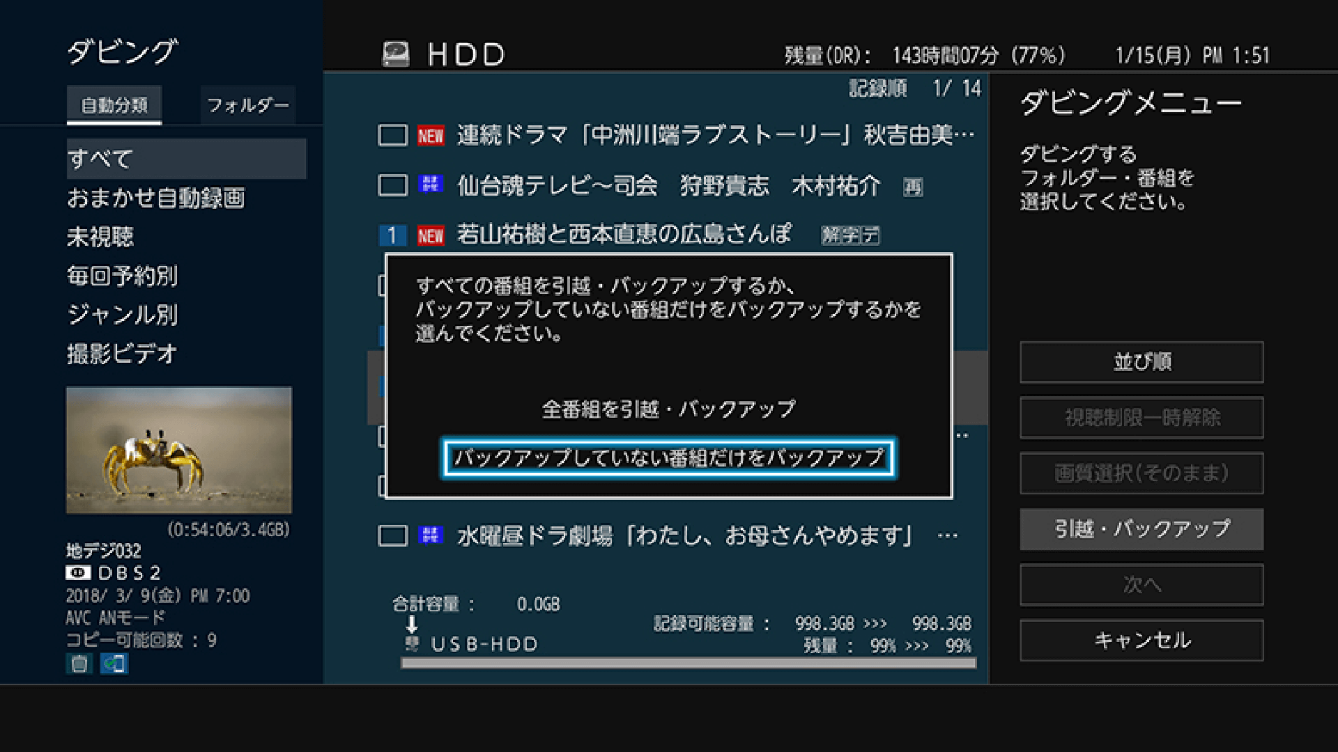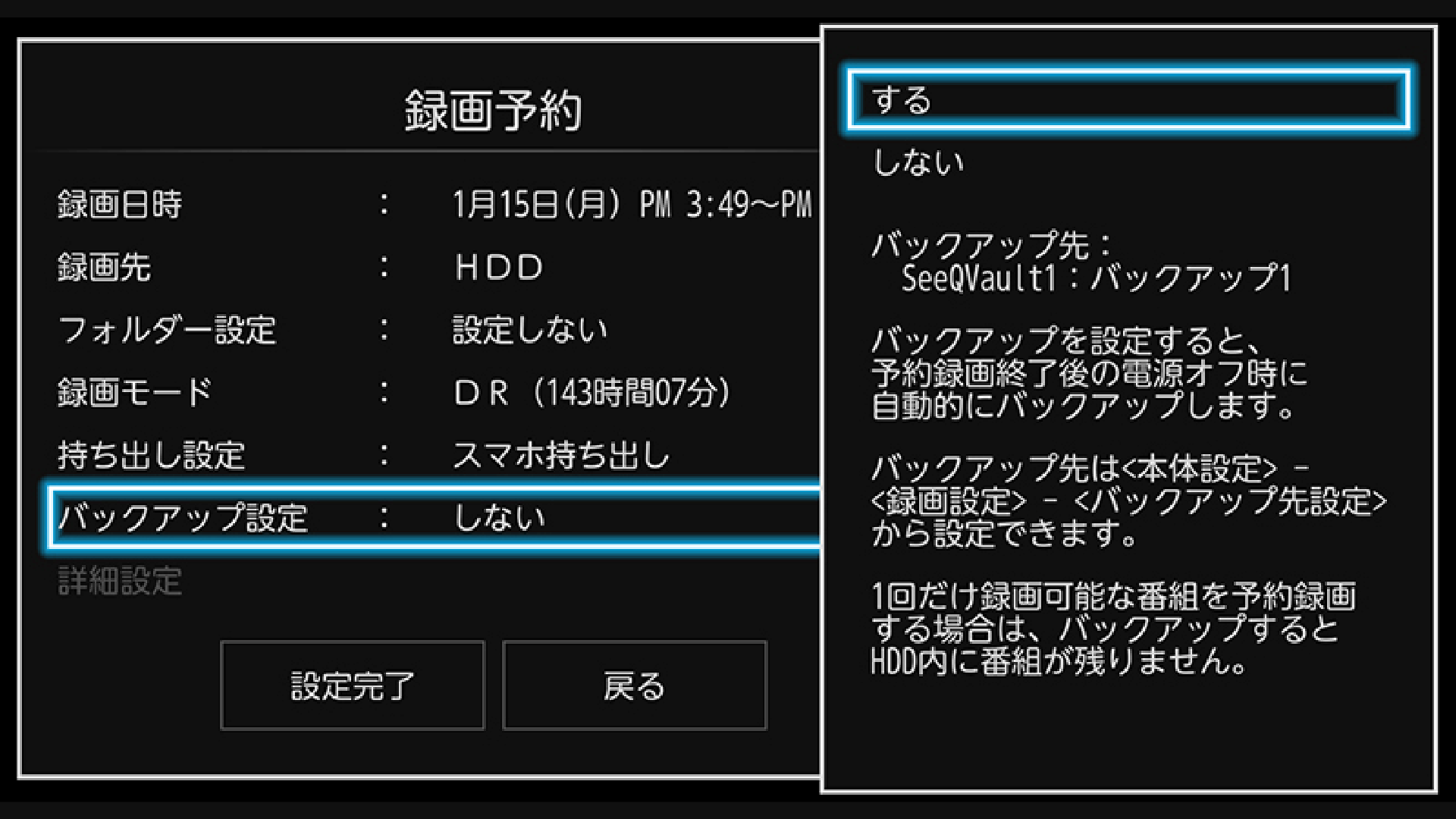 便利なバックアップ機能