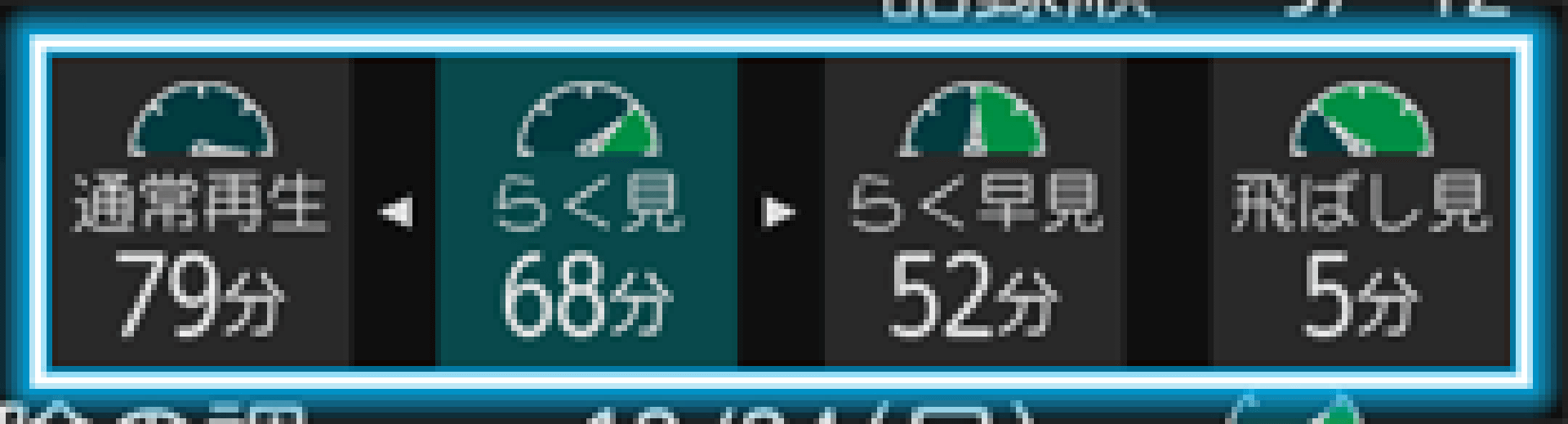 「らく見」「らく早見」で自動スキップする部分の右下に「時短中」マークを表示しながら早送りします。
