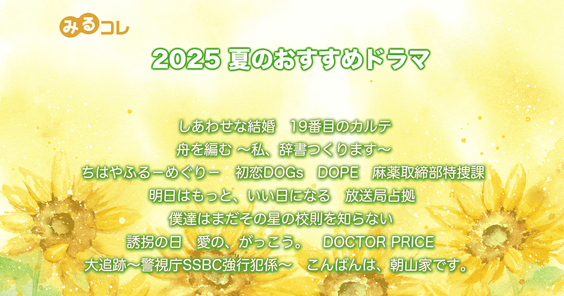 警視庁に新設された最先端の分析部隊「SSBC(捜査支援分析センター)」を舞台に、凶悪犯罪を専門に支援する“強行犯係”の活躍を描く刑事ドラマ。元捜査一課の刑事で現在は《機動分析》担当の伊垣修二(大森南朋さん)は、ある日、警察庁から出向してきたキャリア官僚・名波凛太郎(相葉雅紀さん)の教育係に任命される。さらに、捜査一課の主任で伊垣の元妻・青柳遥(松下奈緒さん)も加わり、複雑な人間関係と緊迫の捜査が交錯していく。脚本は『HERO』『DOCTORS〜最強の名医〜』を手がけた、ヒットメーカーの福田靖氏。防犯カメラ映像やデジタル解析を駆使した“現代型捜査”と、刑事たちの熱い信念がぶつかる本格サスペンス。大森南朋さん×相葉雅紀さん×松下奈緒さんら豪華トリプル主演だけでなく、DREAMS COME TRUEによる主題歌「BEACON」も話題です。王道でありながら新しい、骨太な刑事ドラマが水曜夜に誕生。