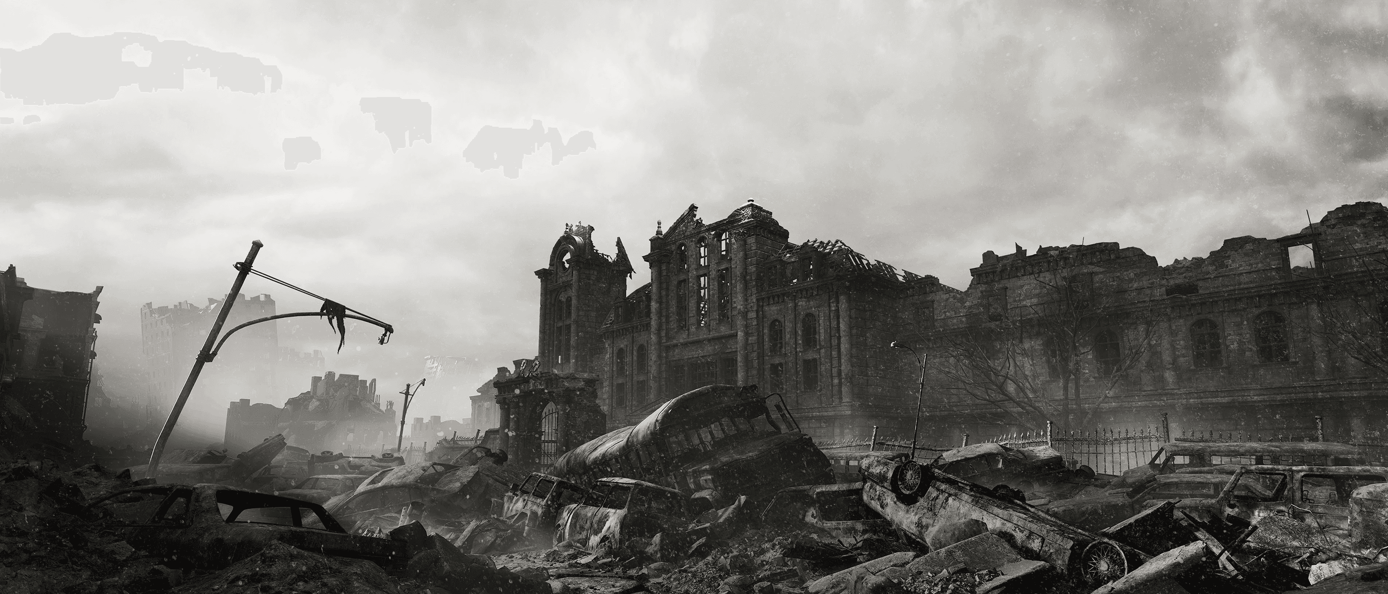 目前に広がる荒廃したラクーンシティ。重く垂れこめる雲、襲い来るまだ見ぬ脅威。