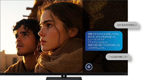 レグザAIボイスナビゲーターは、レグザとの対話を、チャット形式で表示し、コンテンツ検索が簡単にできます。