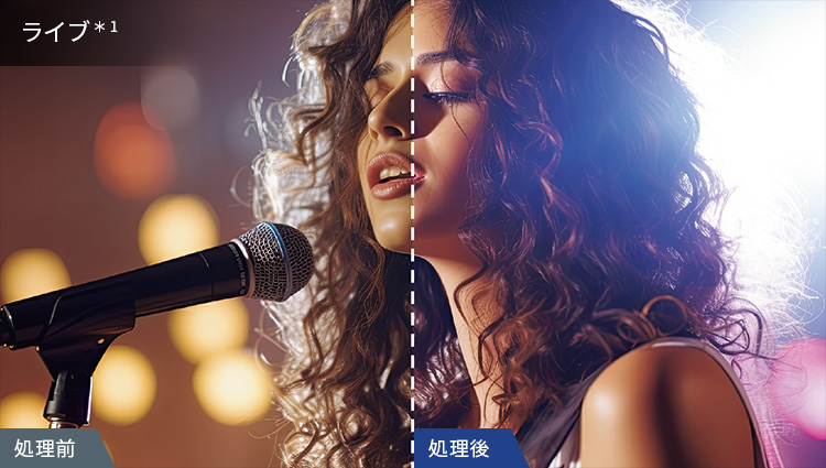 スポットライトやステージのシーンを認識。アーティストをよりクリアに、会場の雰囲気をよりリアルに再現。