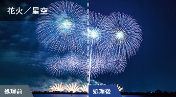 花火や星空の輝きを再現するとともに暗部に発生しやすいノイズを抑え、クリアでリアルな高画質を実現