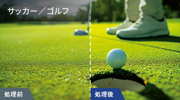 ゴルフのグリーンやコース上にある起伏、サッカー場のフィールドなど、美しい芝目まで立体感豊かに再現