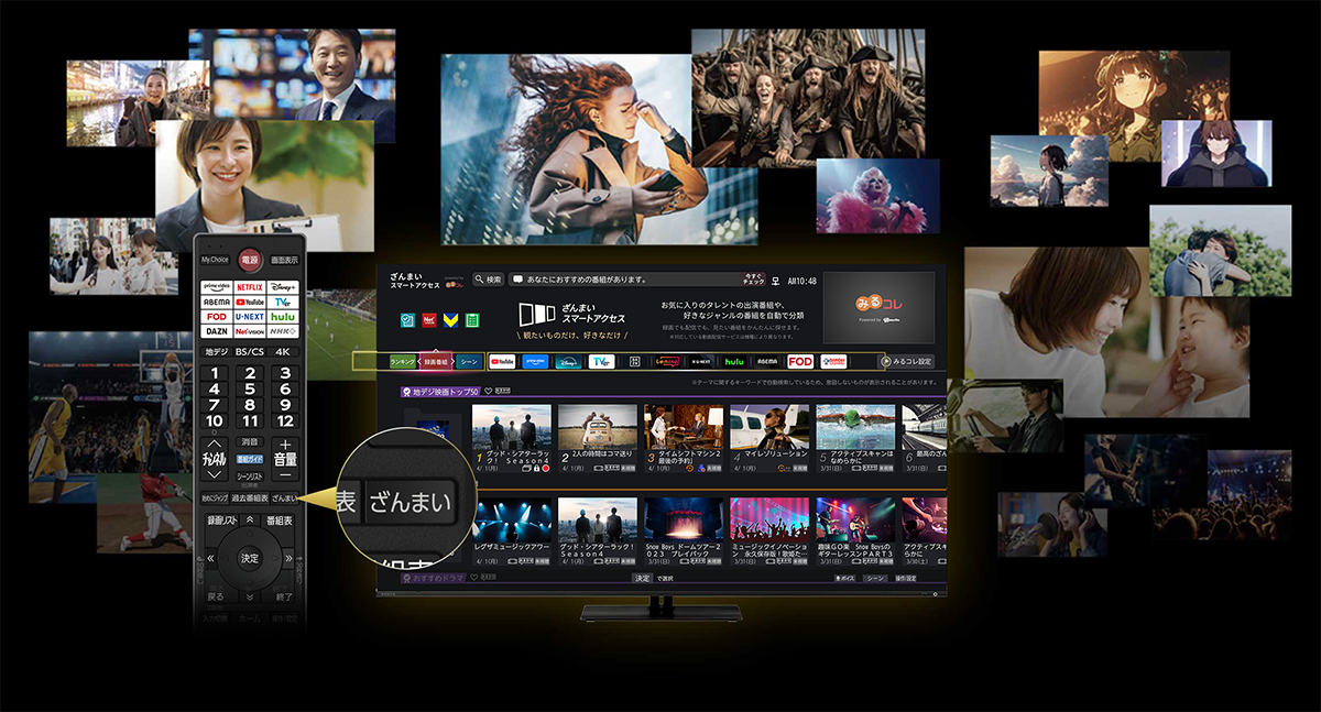 ※録画機能の利用には別売のハードディスクが、またざんまいスマートアクセスの利用にはインターネット接続環境が必要です。