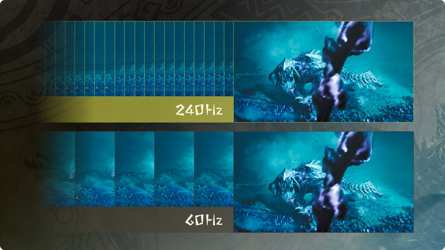 最大240Hzのリフレッシュレートと1ms(GTG)の
