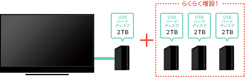 さらに、録画容量が足りなくなったら増設して、手軽に録画容量を増やすことができます。