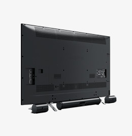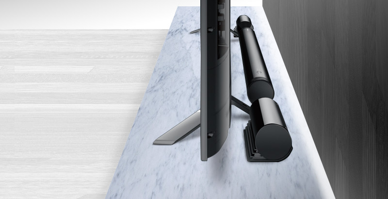 テレビの背面に置くだけでなく、スピーカーを立てて、テレビの両サイドに置くこともできます。テレビ背面に設置しにくい時でも、スタイリッシュに設置できます。